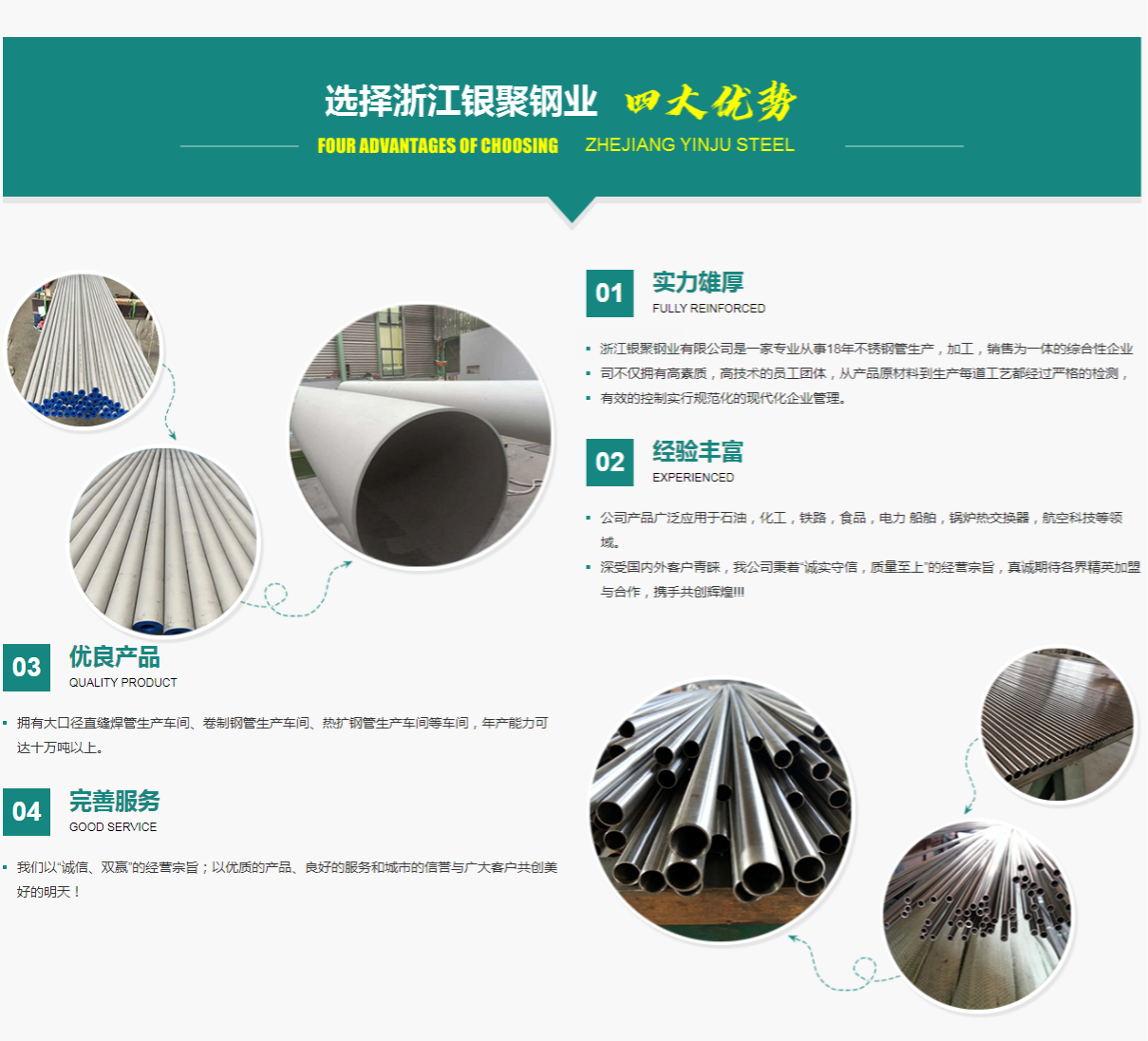 Copyright @ 浙江銀聚鋼業(yè)有限公司-不銹鋼管廠家 版權(quán)所有 | 單位地址:浙江省溫州市龍灣區(qū)永中街道 生產(chǎn)基地:浙江省麗水市龍泉市塔石鎮(zhèn)金崗工業(yè)園區(qū) 浙ICP備2021034082號(hào)-8